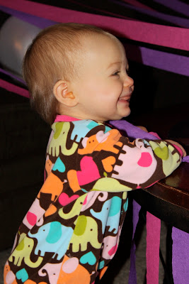 My friend Danae gave me the idea to put some streamers down at kid level, and it was a great surprise when we came out of her room. She softly and carefully played with them--it was so cute. She's so gentle.